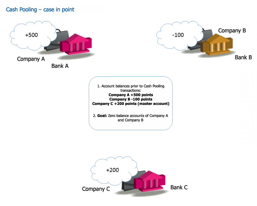 Study-case of cash pooling based on CyberFT is illustrated below.